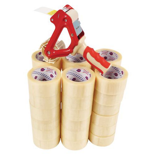 Rolos de fita adesiva em PVC + 1 desenrolador ergonómico – Manutan Expert
