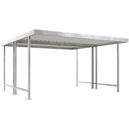 Abrigo para bicicletas prático e fiável. Construção simples e sólida. Resistente às intempéries. Modulável em função das suas necessidades. Montagem fácil. Fixação ao solo através de placa.