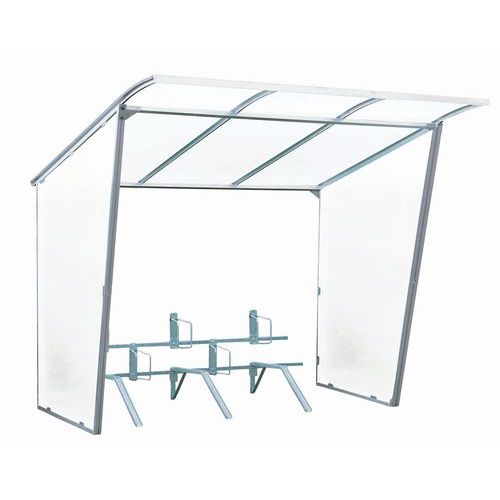 - Abrigo pra velocípedes com parede em policarbonato semiopaca.