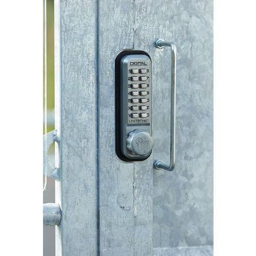 Abrigo com porta de chapa de fecho com digitação de código mecânico.