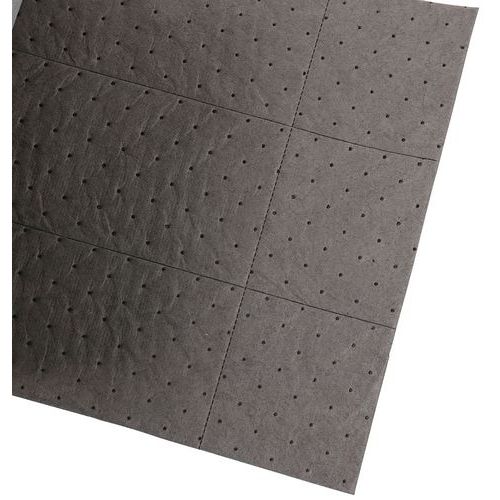 Rolo colocado num distribuidor em cartão leve e facilmente transportável, graças à sua pega. Absorvente com perfuração a cada 25 cm para facilitar o corte à mão. Resistente ao desgaste e aos cortes. Adaptado às passagens frequentes de peões. Separação da folha através das perfurações a cada 25 cm. Tapete resistente à passagem graças à face superior. Dobragem em forma de chouriço espesso a colocar junto das máquinas. Utilizável como pano para limpar e secar.