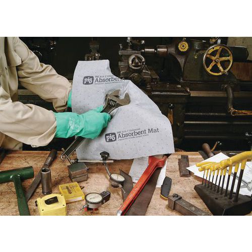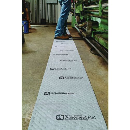 Rolo colocado num distribuidor em cartão leve e facilmente transportável, graças à sua pega. Absorvente com perfuração a cada 25 cm para facilitar o corte à mão. Resistente ao desgaste e aos cortes. Adaptado às passagens frequentes de peões. Separação da folha através das perfurações a cada 25 cm. Tapete resistente à passagem graças à face superior. Dobragem em forma de chouriço espesso a colocar junto das máquinas. Utilizável como pano para limpar e secar.