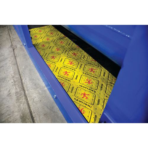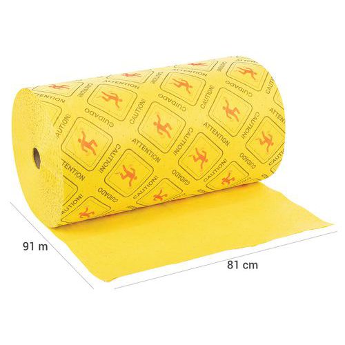 Absorvente com mensagem de aviso para dupla segurança. Permite camuflar ou limpar os líquidos e evita os riscos de escorregar. As cores de alta visibilidade e o pictograma de segurança incitam à vigilância. Grande capacidade de absorção de líquidos industriais não químicos. Ideal para zonas muito movimentadas onde existem riscos de escorregar, tropeçar e cair