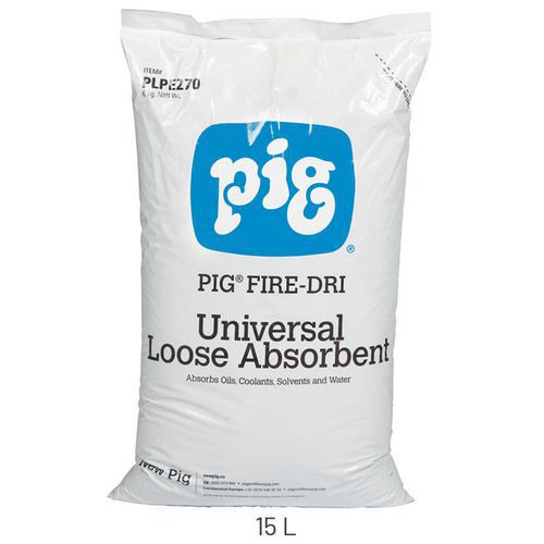| Nome do artigo | Absorvente vegetal Fire-Dri, Líquidos absorvidos: Óleos e hidrocarbonetos, Capacidade total de absorção: 15 L |