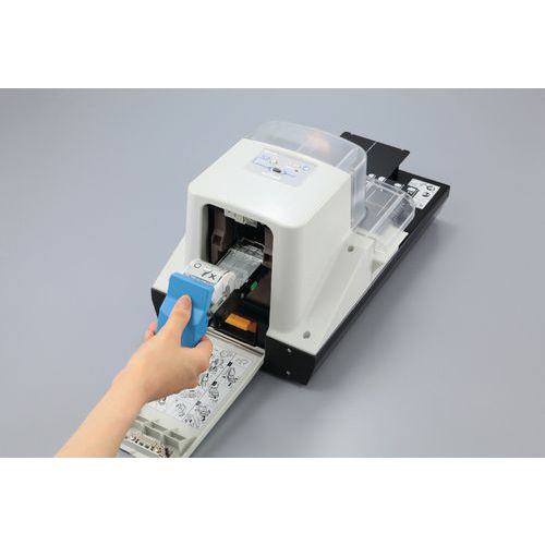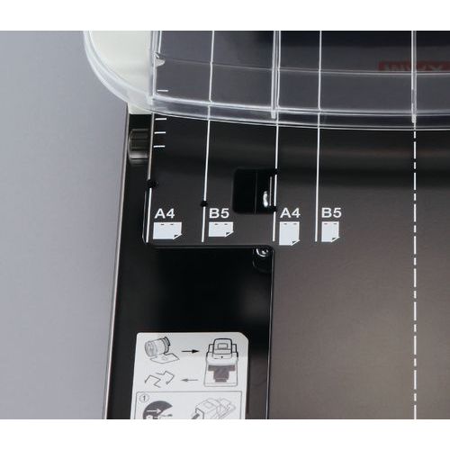 Agrafador equipado com LED tricolor que permite saber quando recarregar o cartucho de agrafos, esvaziar o reservatório para resíduos ou iniciar o rolo de agrafos.