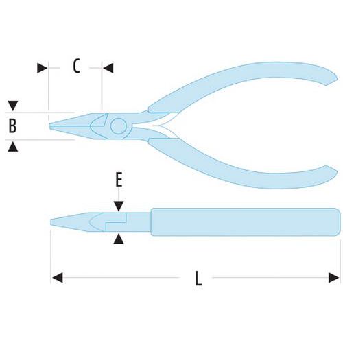 | Nome do artigo | Alicates de corte de pontas meio-redondas ESD, Comprimentos: 120 mm, Ref. Fabricante: 432.E |
