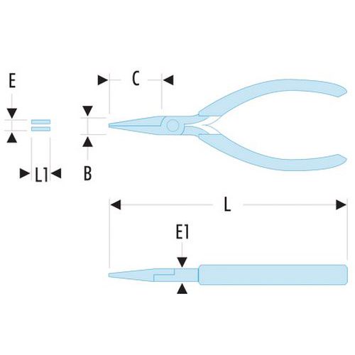 - 442: Pontas estriadas curtas, com corta-fio lateral (diâmetro 2 mm/cobre): 1 mm/aço: 100 Kg/mm²).