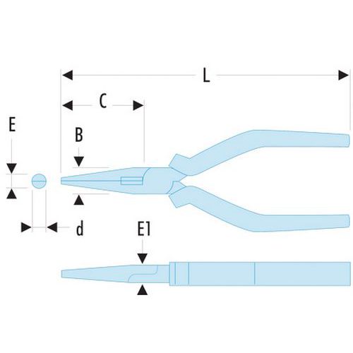 | Nome do artigo | Alicates de pontas meio-redondas longas, Comp.: 200 mm, Ref. Fabricante: 195.20CPESLS, Peso: 215 g |