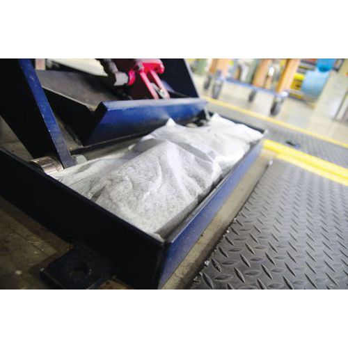 Almofada absorvente para todos os tipos de líquidos não químicos. Forma flexível, ideal para utilização em locais de difícil acesso. Absorção rápida em locais restritos, por exemplo, por baixo de máquinas. Todos os produtos Manutan são testados e aprovados pelas nossas equipas. Ideal para situações de descargas ou fugas industriais