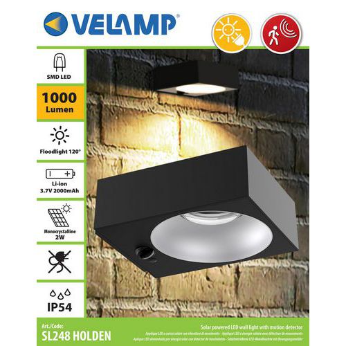 | Nome do artigo | Aplique solar LED de parede com sensor de presença Holden – Velamp, Fluxo luminoso: 1000 lm |