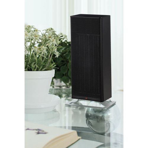 Aquecedor de cerâmica Anna, potente, com capacidade para aquecer eficazmente uma superfície máxima de 25 m². Com termóstato integrado, permite a regulação simples e progressiva da temperatura ambiente. Aquecimento compacto e silencioso, concebido para ser deslocado entre divisões facilmente. Este aquecimento ambiente tem a possibilidade de otimizar as suas faturas de eletricidade. Segurança garantida pela função Tip Over switch, que para automaticamente o aparelho em caso de queda. Pré-filtro de pó no ventilador.