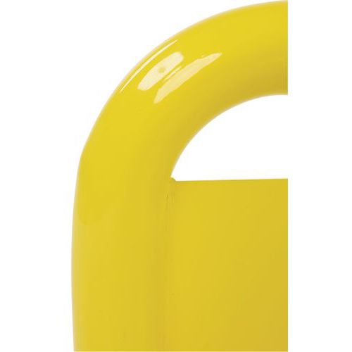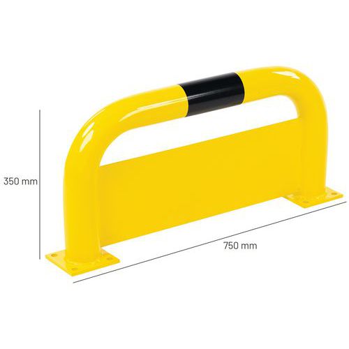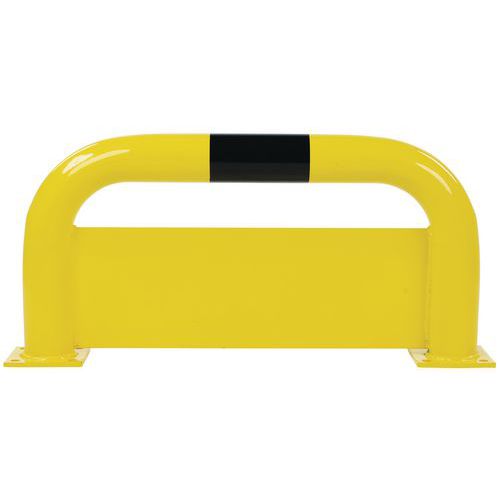 Arco de proteção com placa adicional para a prevenção de choques provocados pelos garfos das máquinas. Placa antiencastramento de construção robusta. Revestimento preto/amarelo para sinalizar o perigo de uma forma visível. Fixação através de placa de chumbar.