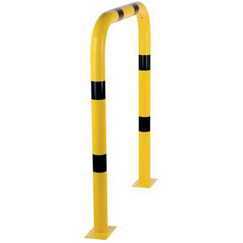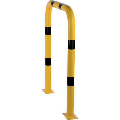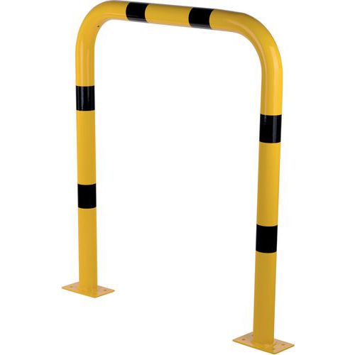 Arco de proteção em aço robusto para proteger os equipamentos ou máquinas contra eventuais pancadas de equipamentos de movimentação. Boa visibilidade graças às suas duas cores amarelo/preto. Indicado para utilização tanto em espaços interiores como exteriores. Material de fixação não incluído. Certificação TÜV.