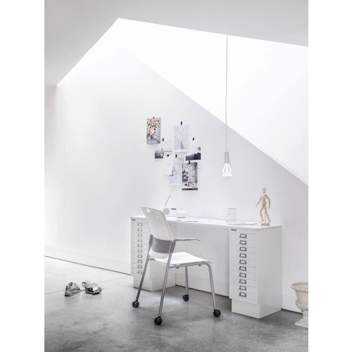 - Armário com gavetas que lhe permite organizar artigos de escritório, documentos, entre outros.