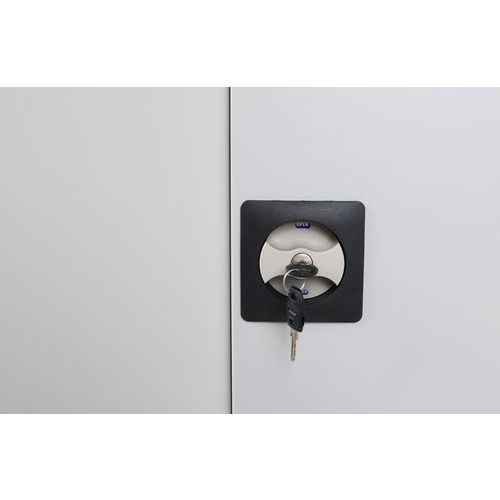 Estrutura com fundo e portas perfurados. Altura da prateleira ajustável em intervalos de 3,6 cm. Portas com fecho: fechadura de 2 pontos e fechadura de canhão. Armário confortável graças à abertura da porta a 180°. Recomendações de segurança: - Instalar o móvel numa superfície plana - Fixá-lo numa parede ou divisória, com uma fixação adequada - Ter atenção para não ultrapassar a carga máxima recomendada, assim como a distribuição correta