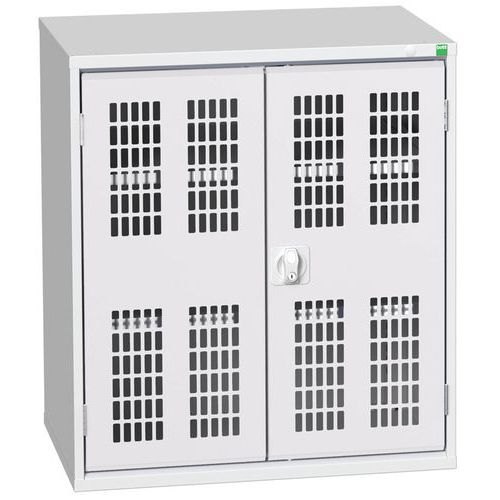 Construção em chapa de aço soldada Portas reforçadas com fecho com ferrolho de 3 pontos Portas ventiladas para uma boa ventilação e visualização do conteúdo Prateleiras em aço galvanizado reguláveis em intervalos de 25 mm Carga por prateleira de 60 kg Conselhos de segurança: – instalar o móvel numa superfície plana – fixá-lo à parede ou a uma divisória, com uma fixação adequada – certificar-se de que a carga máxima recomendada e a respetiva distribuição correta são respeitadas Fabricado no UK Carga máx. (kg) : 1000 Carga máx./prateleira (kg) : 75