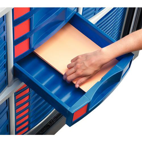 Armazenagem rebatida: economia de espaço. Procura por documentos facilitada graças à codificação por cores das etiquetas. Gavetas intermutáveis e fáceis de manusear. Fecho com uma fechadura. Opte por um sistema de armazenamento seguro e extremamente prático, que oferece várias gavetas. Opte por um sistema de armazenamento seguro e extremamente prático, que oferece várias gavetas