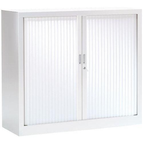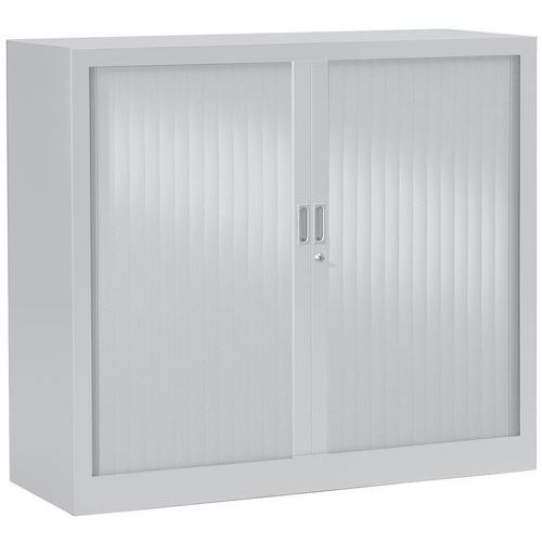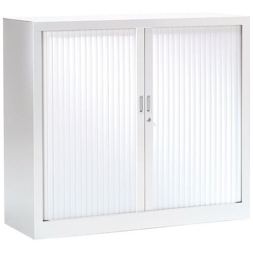 Armário com portas de persiana monobloco. Prateleiras ajustáveis equipadas para acomodar pastas suspensas. Fundo plano e 4 parafusos de regulação. Fechadura com 2 chaves com pontas dobráveis. Persianas de abertura total e puxadores embutidos. Armário com portas de persiana monobloco. Prateleiras ajustáveis equipadas para acomodar pastas suspensas. Fundo plano e 4 parafusos de regulação. Fechadura com 2 chaves com pontas dobráveis. Persianas de abertura total e puxadores embutidos. Opte por um armário funcional, rígido e robusto