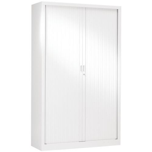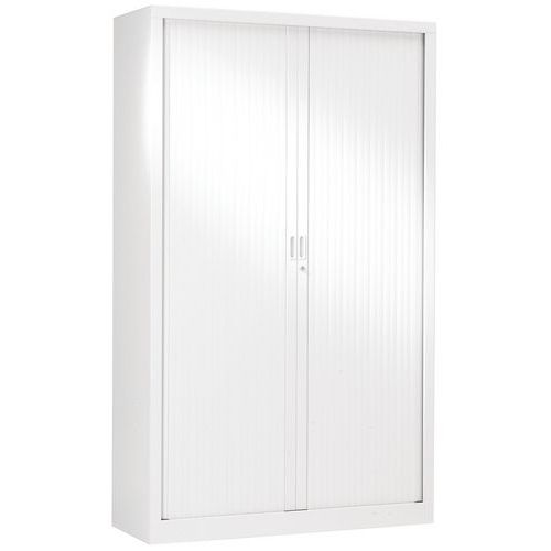Armário com portas de persiana monobloco. Prateleiras ajustáveis equipadas para acomodar pastas suspensas. Fundo plano e 4 parafusos de regulação. Fechadura com 2 chaves com pontas dobráveis. Persianas de abertura total e puxadores embutidos. Armário com portas de persiana monobloco. Prateleiras ajustáveis equipadas para acomodar pastas suspensas. Fundo plano e 4 parafusos de regulação. Fechadura com 2 chaves com pontas dobráveis. Persianas de abertura total e puxadores embutidos. Opte por um armário funcional, rígido e robusto