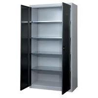 Armário com portas rebatíveis e fechadura de segurança com pega rotativa. Fabricado em chapa de aço de qualidade superior. Armário com portas rebatíveis e fechadura de segurança com pega rotativa. Fabricado em chapa de aço de qualidade superior. 4 prateleiras galvanizadas. Capacidade de carga por prateleira: 60 kg. Entregue montado.