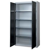 Armário com portas rebatíveis e fechadura de segurança com pega rotativa. Fabricado em chapa de aço de qualidade superior. Armário com portas rebatíveis e fechadura de segurança com pega rotativa. Fabricado em chapa de aço de qualidade superior. 4 prateleiras galvanizadas. Capacidade de carga por prateleira: 60 kg. Entregue montado.