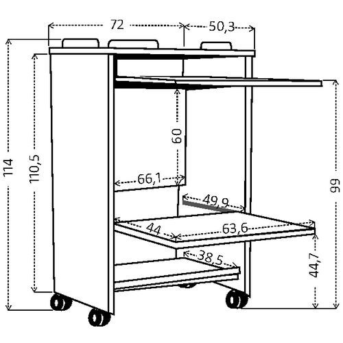 | Nome do artigo | Armário com rodízios para produtos informáticos, Tampo cor: Cinzento, N.º de prateleiras: 4 |