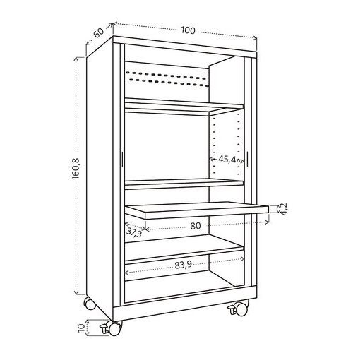 | Nome do artigo | Armário com rodízios para produtos informáticos, Tampo cor: Cinzento, N.º de prateleiras: 3 |