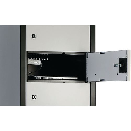 Solução de arrumação com fecho seguro através de fechadura com chave.