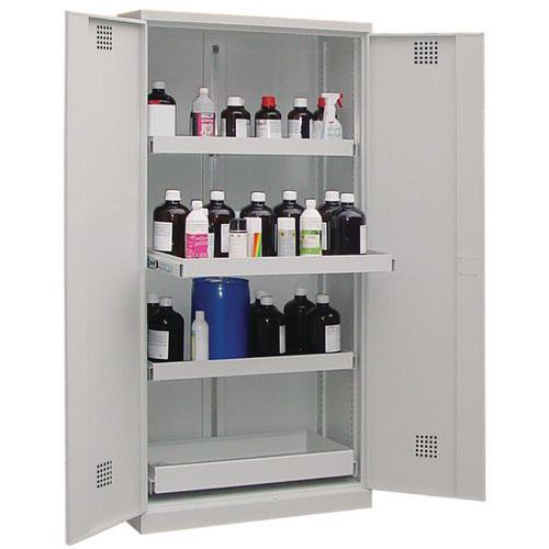 Fornecido com 4 pictogramas normalizados: inflamável (x1), tóxico (x1) e corrosivo (x2). Armário vendido sem molas de porta. Opção disponível mediante encomenda (custo adicional).