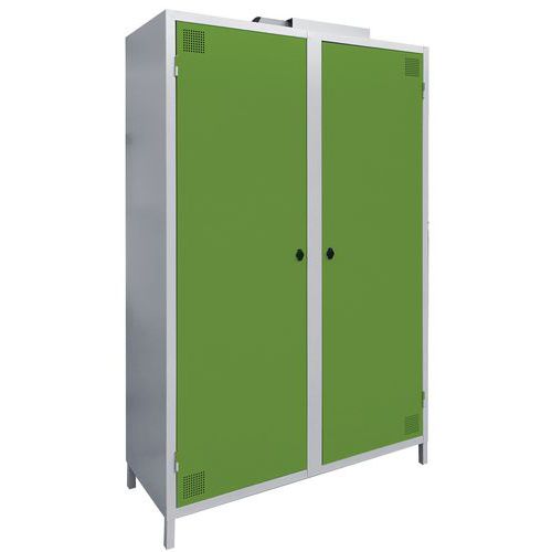 Armário de desinfeção rápida, eficaz e económica com tecnologia de ozono. Prateleira com perfurações grandes para a livre circulação e a boa ventilação do ozono. Armário com resguardo de proteção, bem como indicador de funcionamento Air Care. Produto concebido e fabricado em França. Solução de ozono: desinfeção total de vestuário e ferramentas em tempo recorde!