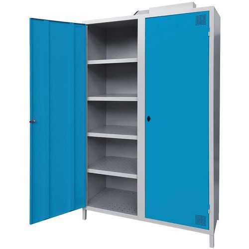 Armário de desinfeção rápida, eficaz e económica com tecnologia de ozono. Prateleira com perfurações grandes para a livre circulação e a boa ventilação do ozono. Armário com resguardo de proteção, bem como indicador de funcionamento Air Care. Produto concebido e fabricado em França. Solução de ozono: desinfeção total de vestuário e ferramentas em tempo recorde!