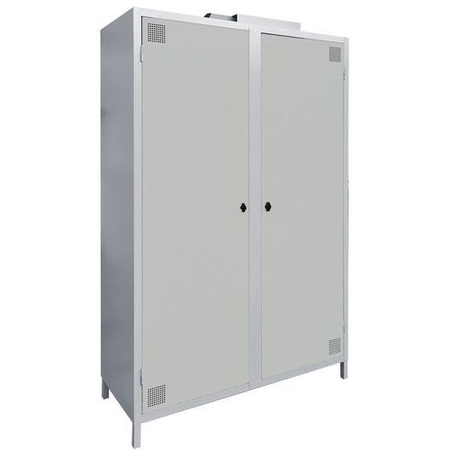 Armário de desinfeção rápida, eficaz e económica com tecnologia de ozono. Prateleira com perfurações grandes para a livre circulação e a boa ventilação do ozono. Armário com resguardo de proteção, bem como indicador de funcionamento Air Care. Produto concebido e fabricado em França. Solução de ozono: desinfeção total de vestuário e ferramentas em tempo recorde!