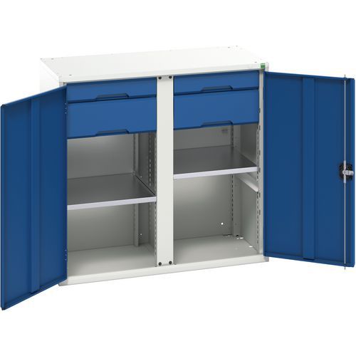 Armário Verso 2x2 com gavetas e portas integrais – Bott, Carga máx.: 1000 kg, Material: Aço