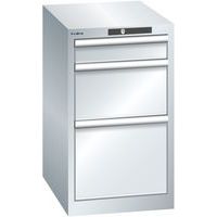 A elevada estabilidade da estrutura tem capacidade para até 4 t, as gavetas têm capacidade para até 75 ou 200 kg Utilização ideal graças à extensão total e à altura frontal ideal das gavetas Excelente proteção contra pó, líquidos e desgaste mecânico graças a uma estrutura fechada com superfície resistente a impactos e à abrasão Segurança a toda a prova, proteção contra o desengate que impede a queda da gaveta e o bloqueio individual das gavetas (sistema antibasculamento) Proteção contra corrosão com tinta de imersão em eletroforese e tinta em spray Armazenamento e organização otimizados graças ao material da subdivisão LISTA adaptado a cada aplicação e às gavetas com ranhuras e perfurações Etiquetagem profissional com software de etiquetagem LISTA Script e barra de preensão rebatível para inserção de etiquetas Movimento perfeitamente silencioso graças à calha sem travessa Carga máx. (kg) : 75