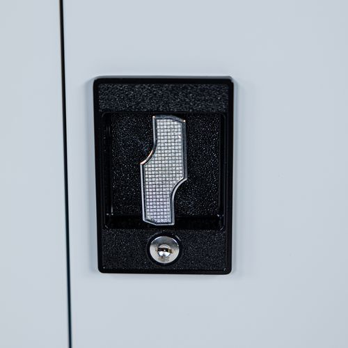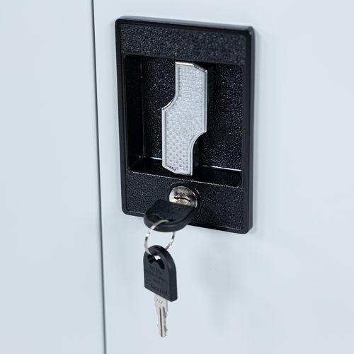 Fecho através de fechadura com chave para maior segurança.
