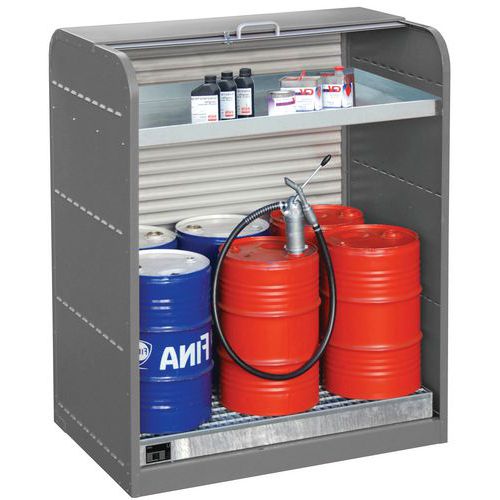- Armário de retenção para o armazenamento de bidões ou de pequenos recipientes.