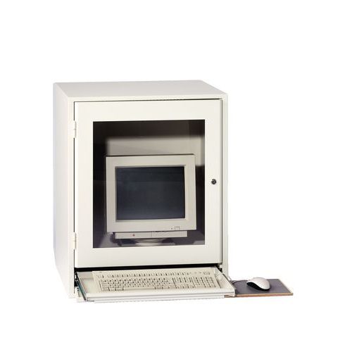 Proteja o seu ecrã neste sólido armário com porta rebatível.