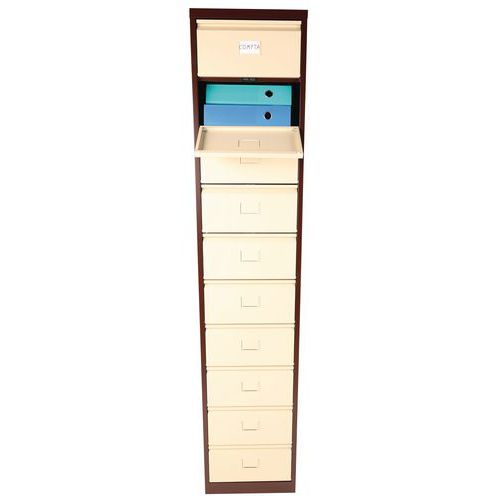 | Nome do artigo | Armário para pastas com aba – 10 compartimentos, Altura total: 198 cm, Largura total: 41 cm |