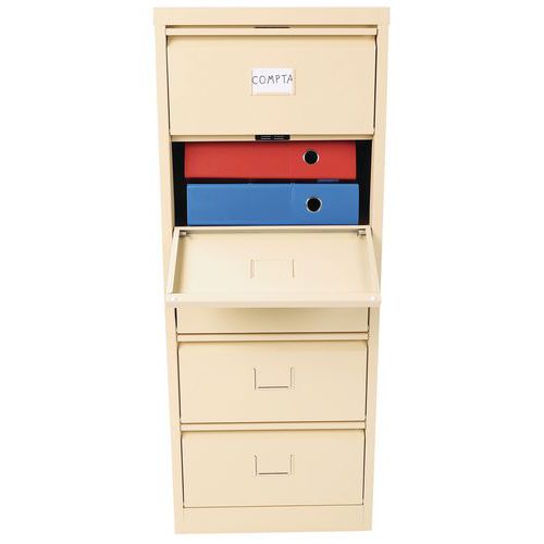 | Nome do artigo | Armário para pastas com aba – 5 compartimentos, Altura total: 103.5 cm, Largura total: 41 cm |