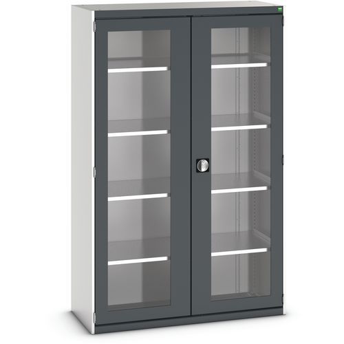 Armário com portas transparentes Cubio 1300x525x2000 mm – Bott, Carga máx.: 1500 kg, Material: Aço