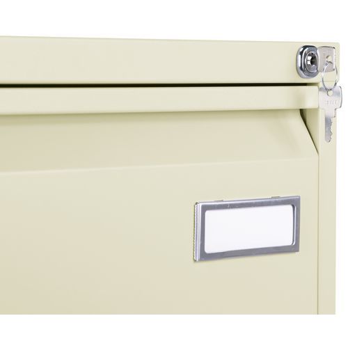 A proteção contra queda impede a abertura acidental de mais das gavetas. Graças à pega a toda a largura o manuseamento é sempre fácil. Arquivo de gavetas clássico para pastas nos formatos A4, fólio e fólio grande. O produto inclui uma base para cada gaveta. Pode bloquear o bloco com a chave fornecida (1 conjunto de duas chaves). Recomendações de segurança: – Instalar o móvel numa superfície plana – Fixá-lo numa parede ou divisória com uma fixação adequada – Ter atenção para não ultrapassar a carga máxima recomendada, assim como a distribuição correta – Produto com sistema de bloqueio capaz de suportar 50 pastas suspensas.