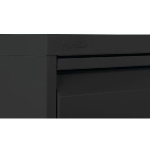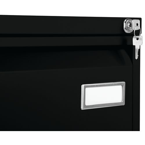 A proteção contra queda impede a abertura acidental de mais das gavetas. Graças à pega a toda a largura o manuseamento é sempre fácil. Arquivo de gavetas clássico para pastas nos formatos A4, fólio e fólio grande. O produto inclui uma base para cada gaveta. Pode bloquear o bloco com a chave fornecida (1 conjunto de duas chaves). Recomendações de segurança: – Instalar o móvel numa superfície plana – Fixá-lo numa parede ou divisória com uma fixação adequada – Ter atenção para não ultrapassar a carga máxima recomendada, assim como a distribuição correta – Produto com sistema de bloqueio capaz de suportar 50 pastas suspensas.