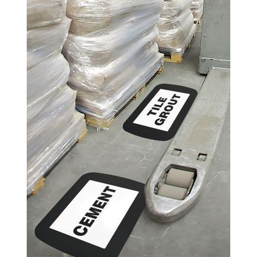 - O autocolante retangular A4 Frames4Floors permite fixar uma mensagem no pavimento.