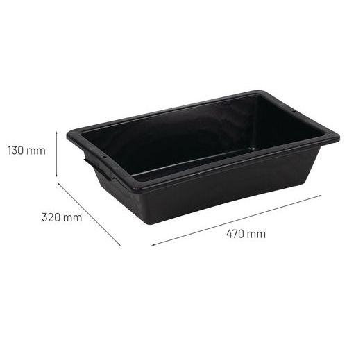 | Nome do artigo | Bacia de plástico preta de 12 L, Capacidade: 12 L, Material: Plástico, Comprimento total: 320 mm |