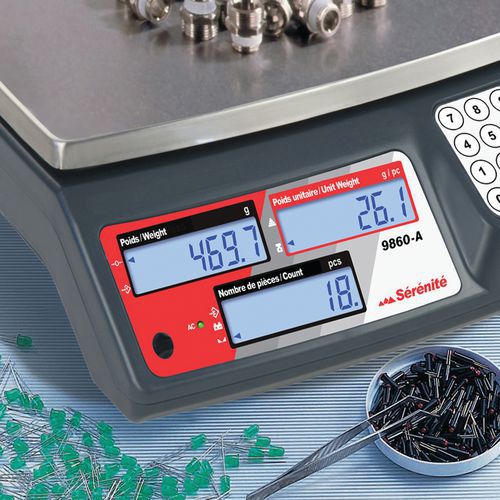- Legibilidade perfeita graças aos 3 visores: peso bruto ou líquido, peso unitário e número de peças.