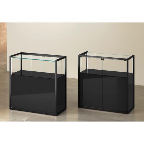 Balcão de exposição com arrumação 95 x 45 x 95 cm – Sarazino, Base cor: Preto, Altura: 95 cm, Largura: 95 cm