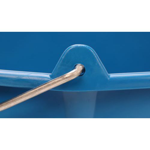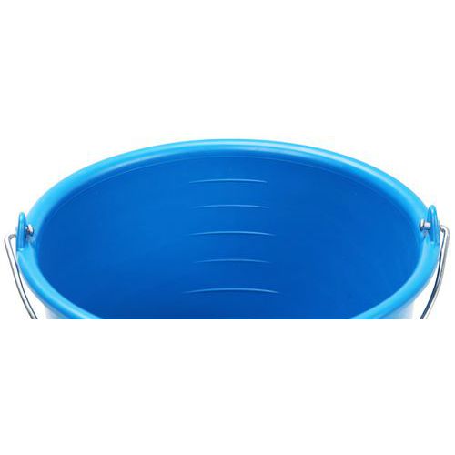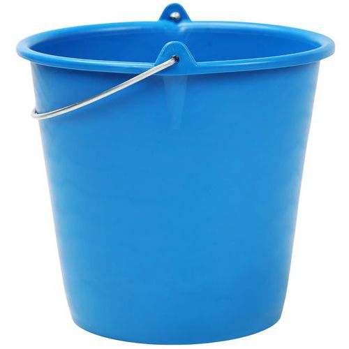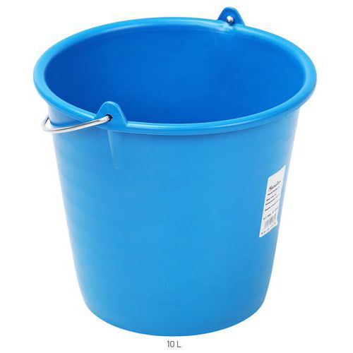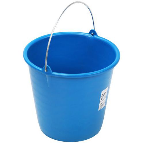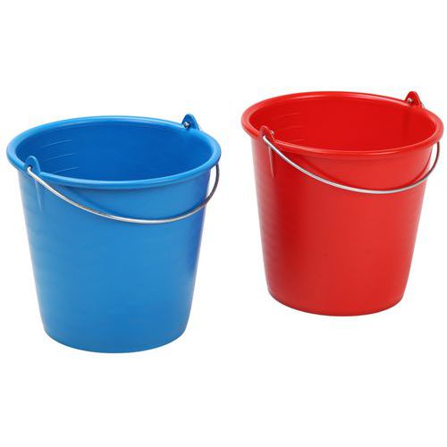 Balde redondo – 10 L – Manutan Expert Com pega em metal, para utilização industrial. Utilize o balde azul para a água limpa e o balde vermelho para a água suja.