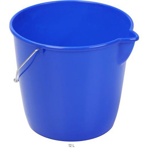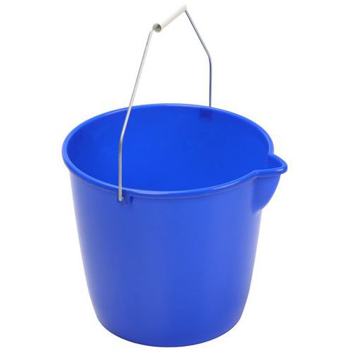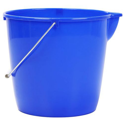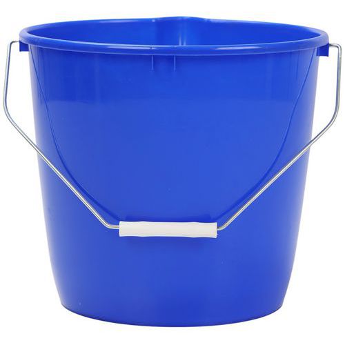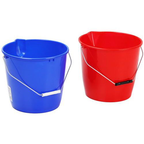 Balde redondo com bico de descarga – 12 L – Manutan Expert Com bico de descarga e asa em metal, equipado com pega em plástico, para utilização frequente. Utilize o balde azul para a água limpa e o balde vermelho para a água suja.
