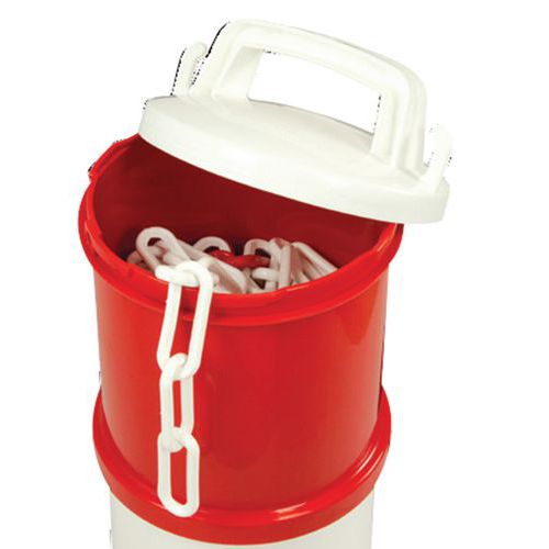 Baliza normal composta de: 1 base, 4 elementos (2 cores), 1 tampa e 5 metros de corrente. Entregue com: - Parafuso de montagem da base/segmento, - Barras de montagem/desmontagem dos segmentos.