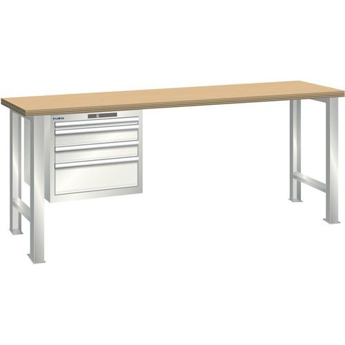 Montagem rápida e simples graças às plataformas de bancadas com orifícios pré-perfurados com porcas de enroscar (pré-montadas) para fixação de todos os suportes e armários de gavetas
